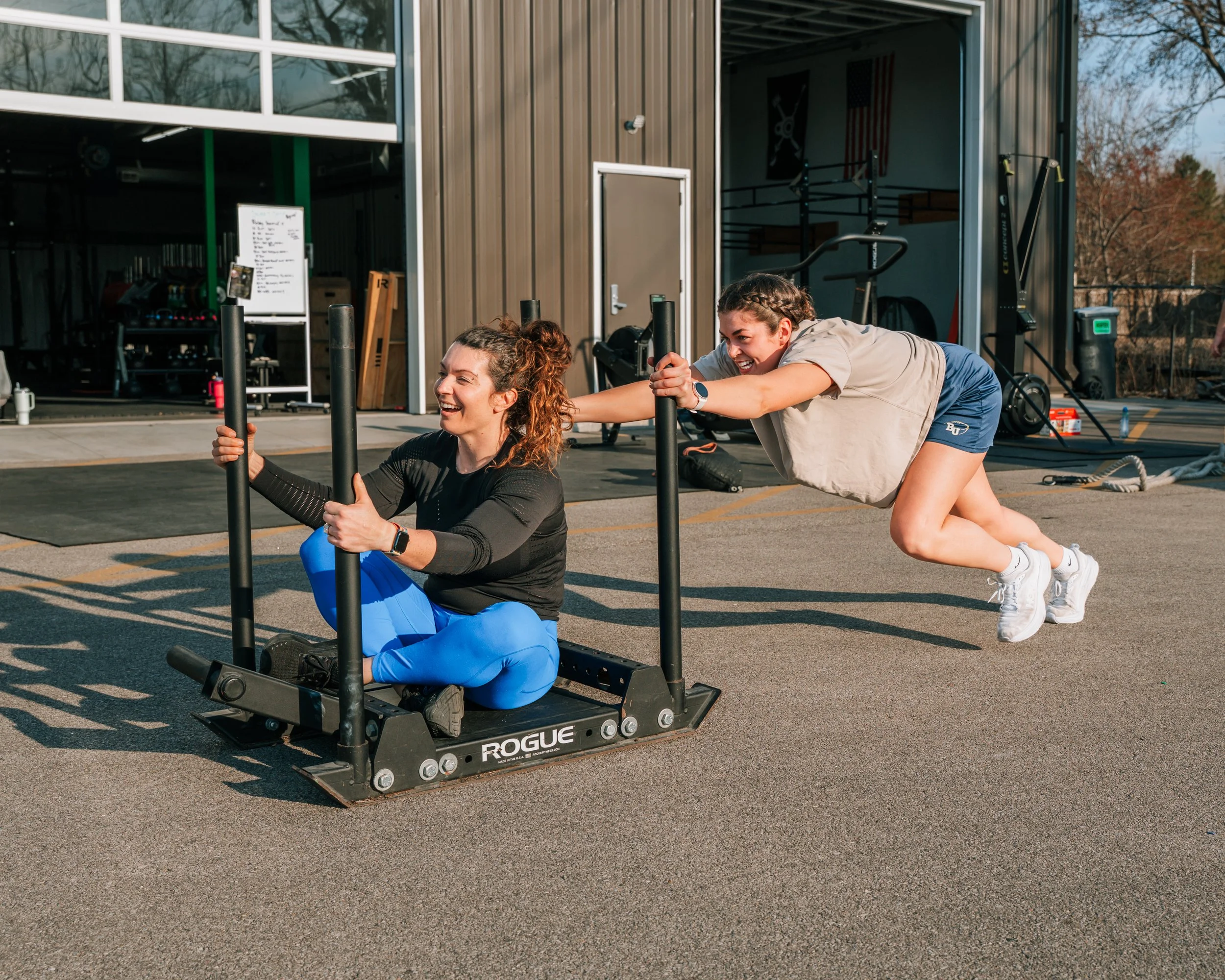 HYROX is a fun and fast-paced workout that combines running with functional fitness movements like sled pushes, rowing, and wall balls. It’s perfect for anyone looking to break a sweat, build endurance, and challenge themselves in a new way. Whether you're a CrossFit regular or just want a great full-body workout, our HYROX Sweat Shop classes are a welcoming space to push your limits, have fun, and leave feeling accomplished. No experience needed—just show up and sweat!